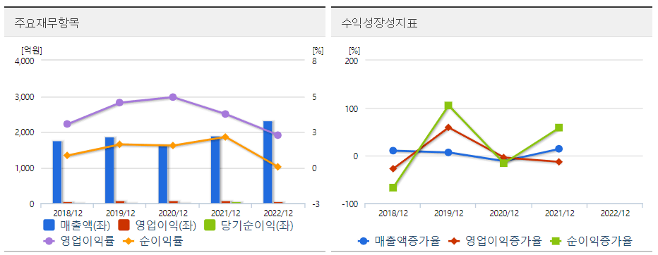 - 자동차 산업 비수기임에도 불구하고 주요 제품인 자동차 모듈 부품 공급이 확대되면서 외형은 성장함.