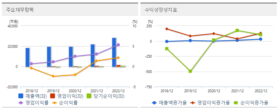 • 자동차 산업 비수기임에도 불구하고 주요 제품인 자동차 모듈 부품 공급이 확대되면서 외형은 성장함.