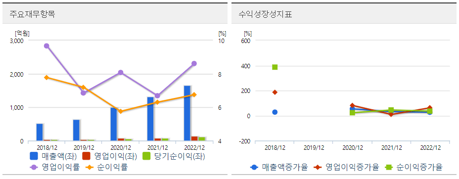 - 매출액 증가, 판관비 및 인건비 개선으로 영업이익 흑자전환 하였고 이익은 크게 증가함. 매출원가율은 소폭 감소하며 유사한 수준을 유지함.